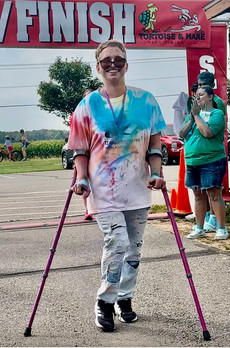 The first was watching Bea cross the finish line after completing their very first 5K independently, using forearm crutches.